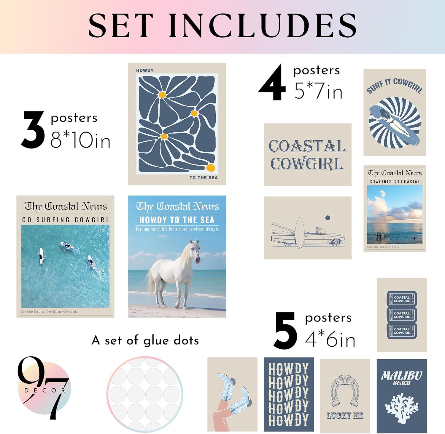 Coastal Cowgirl Posters Set Includes: 12pcs coastal cowgirl prints 8×10 inch and a plenty of glue dots so you can hang these beachy prints without buying frame. If you wish a frame, you can try to shop our store
