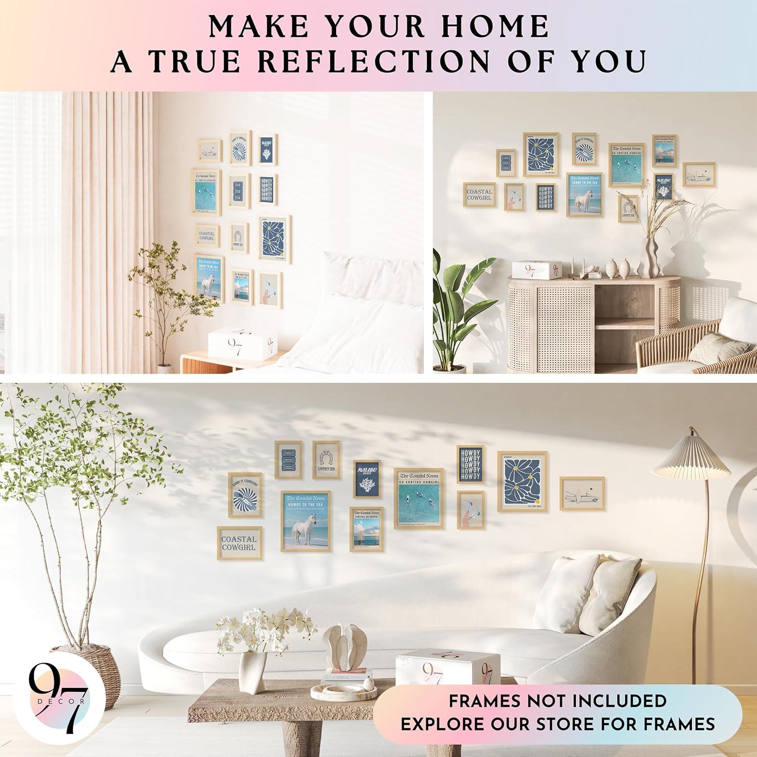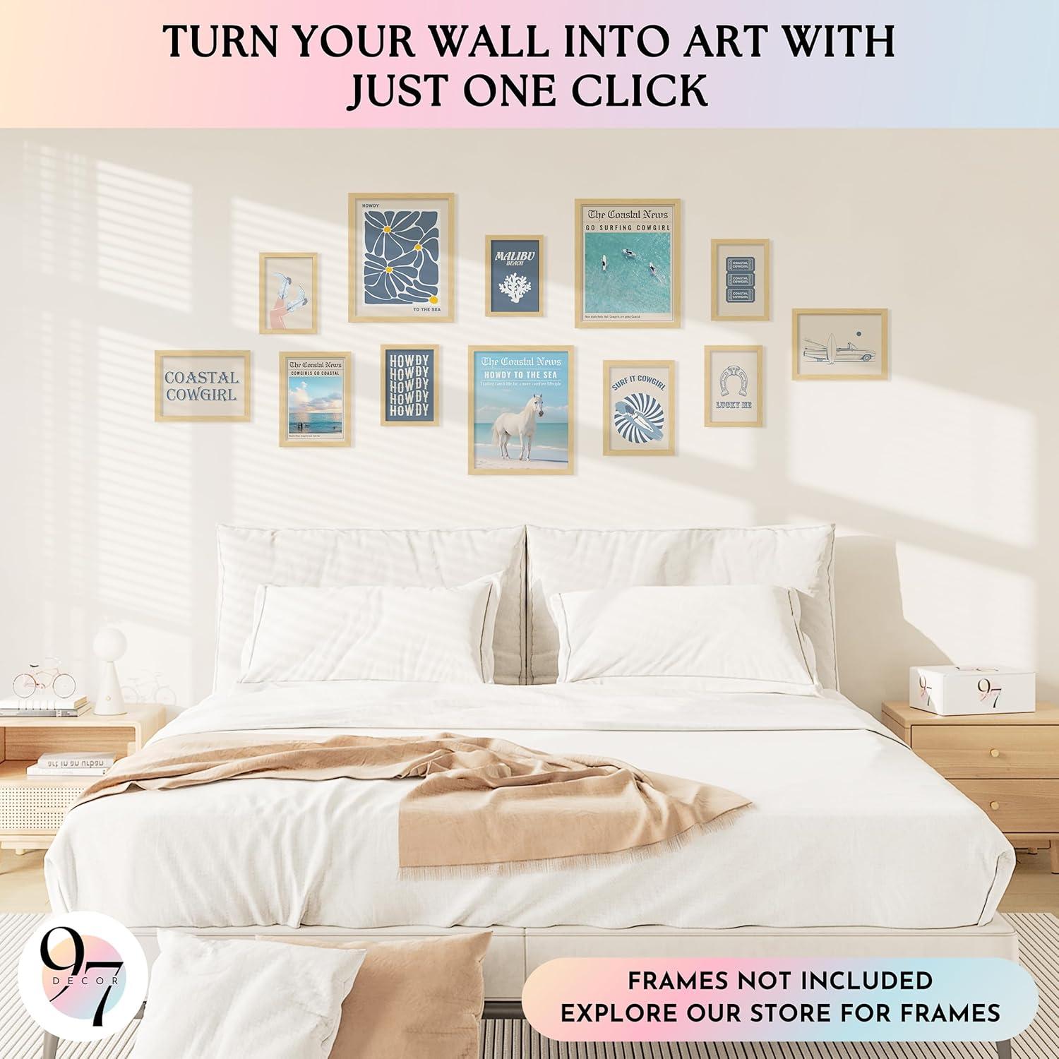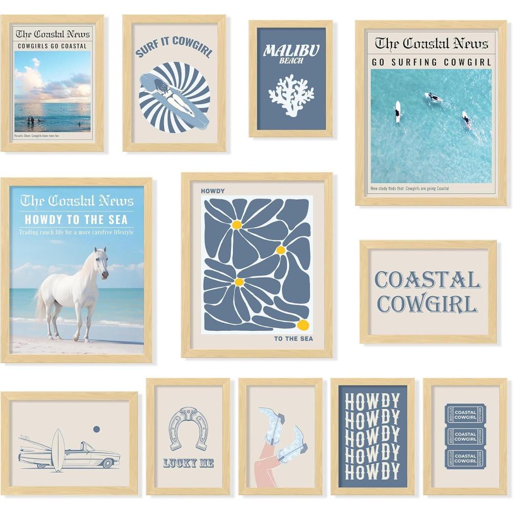 Coastal Cowgirl Room Decor: This beach posters for room aesthetic set blends the blue color palette and the rustic style of the antique cowboy, which will bring the wild soul of the blue coastal room decor aesthetic alive right in your room