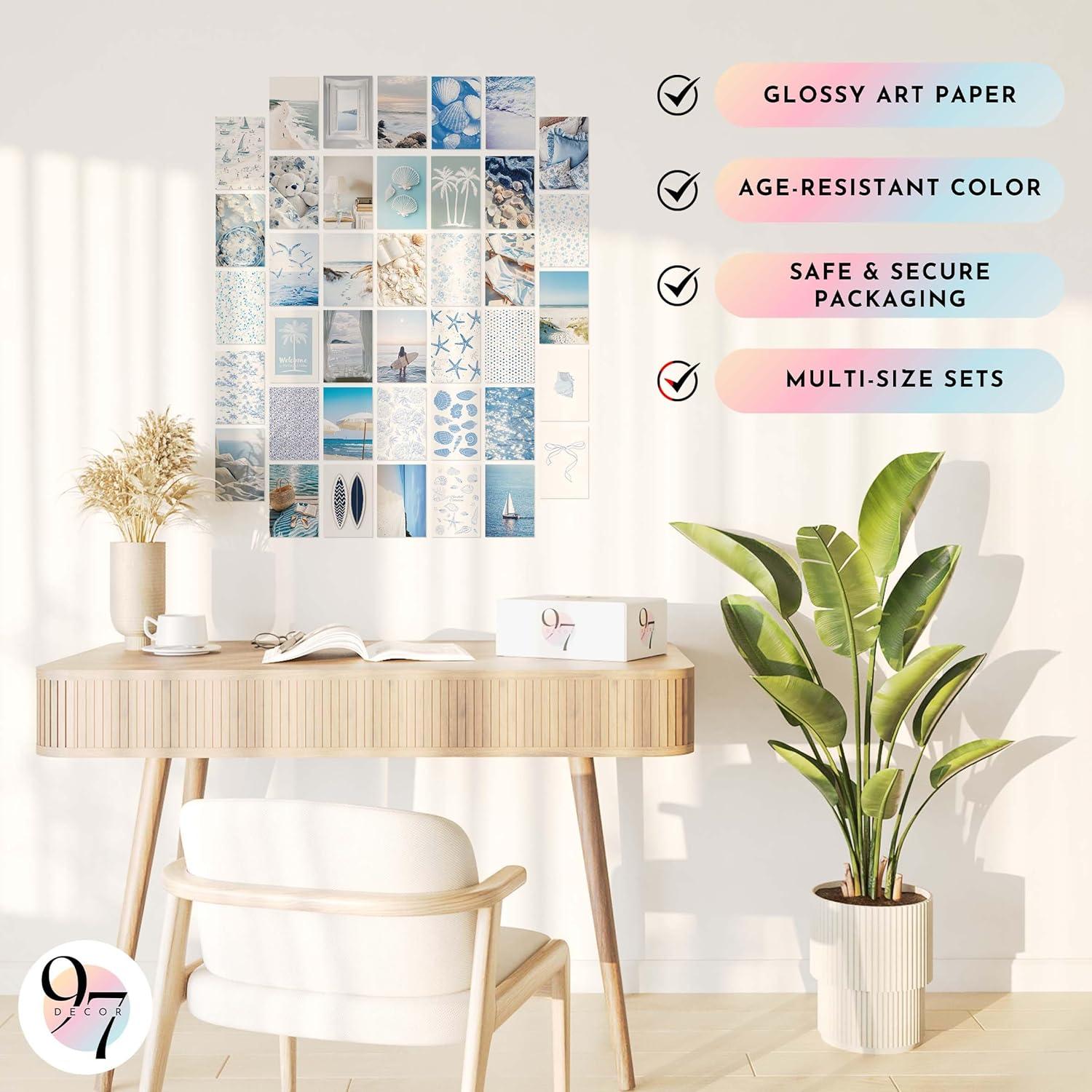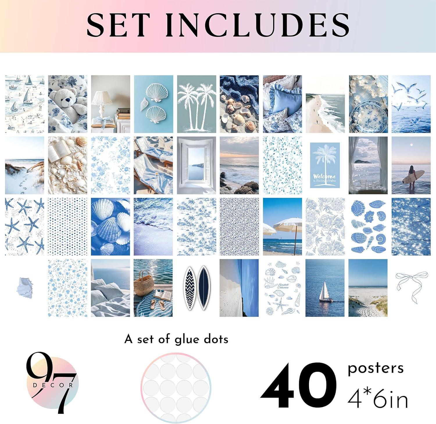 97 Decor Coastal Wall Art - 40 Pcs Blue Ocean Art Prints, Beachy Collage, Summer Pictures, Beach Wall Decor For Bedroom Dorm (4x6)(Coastal)