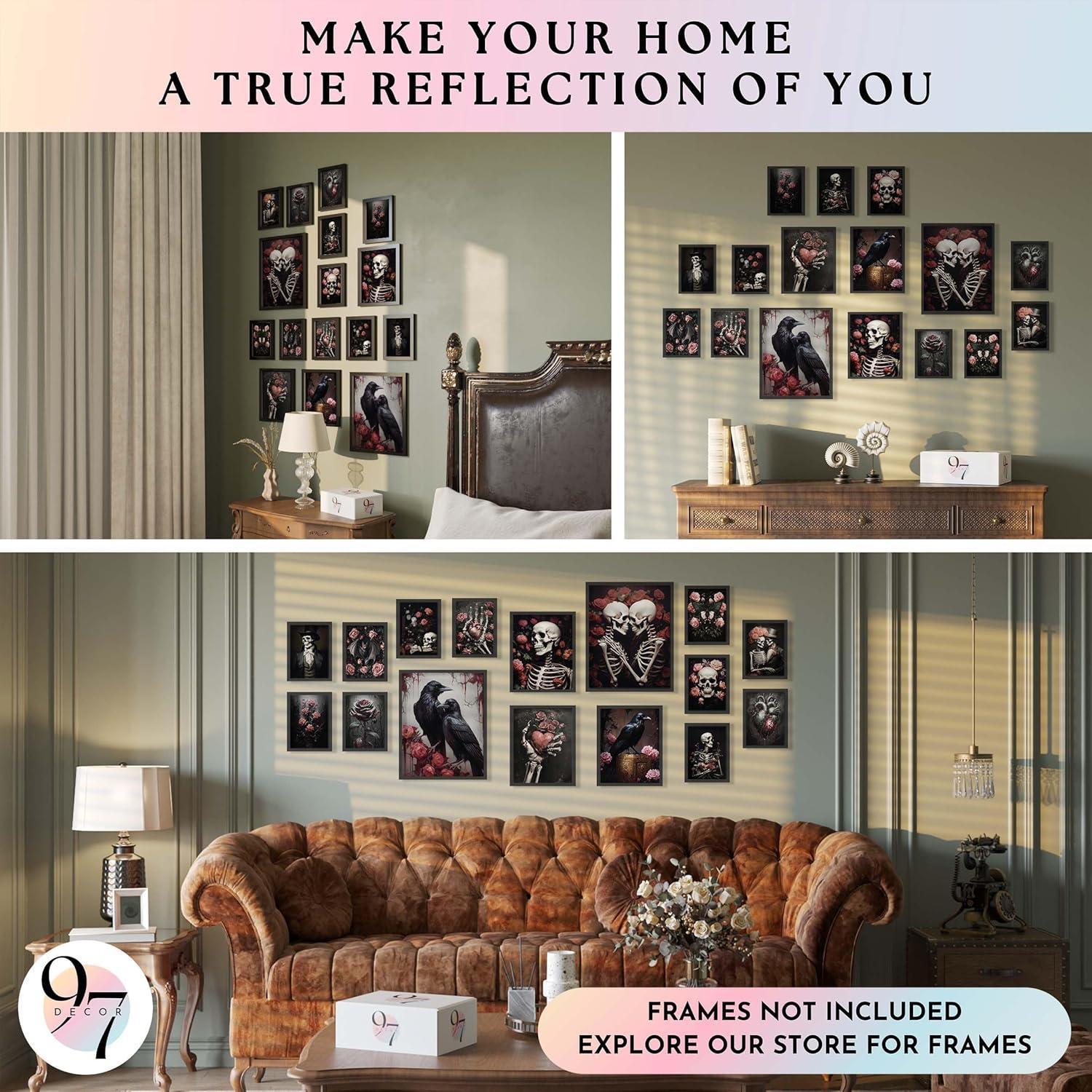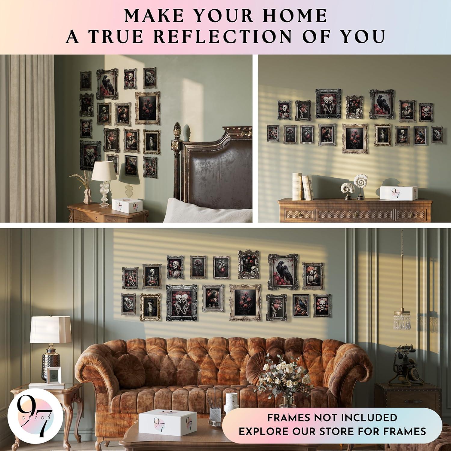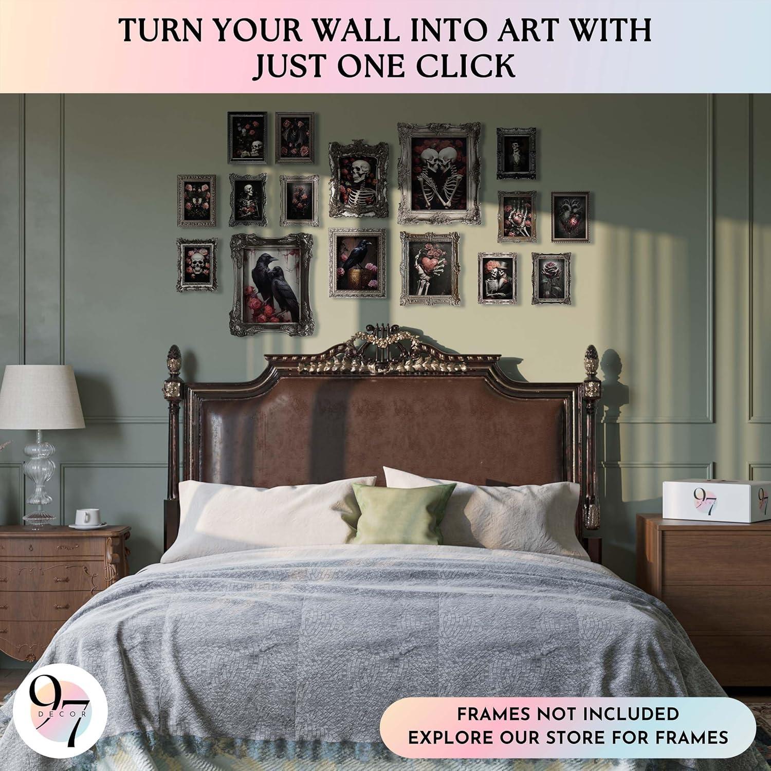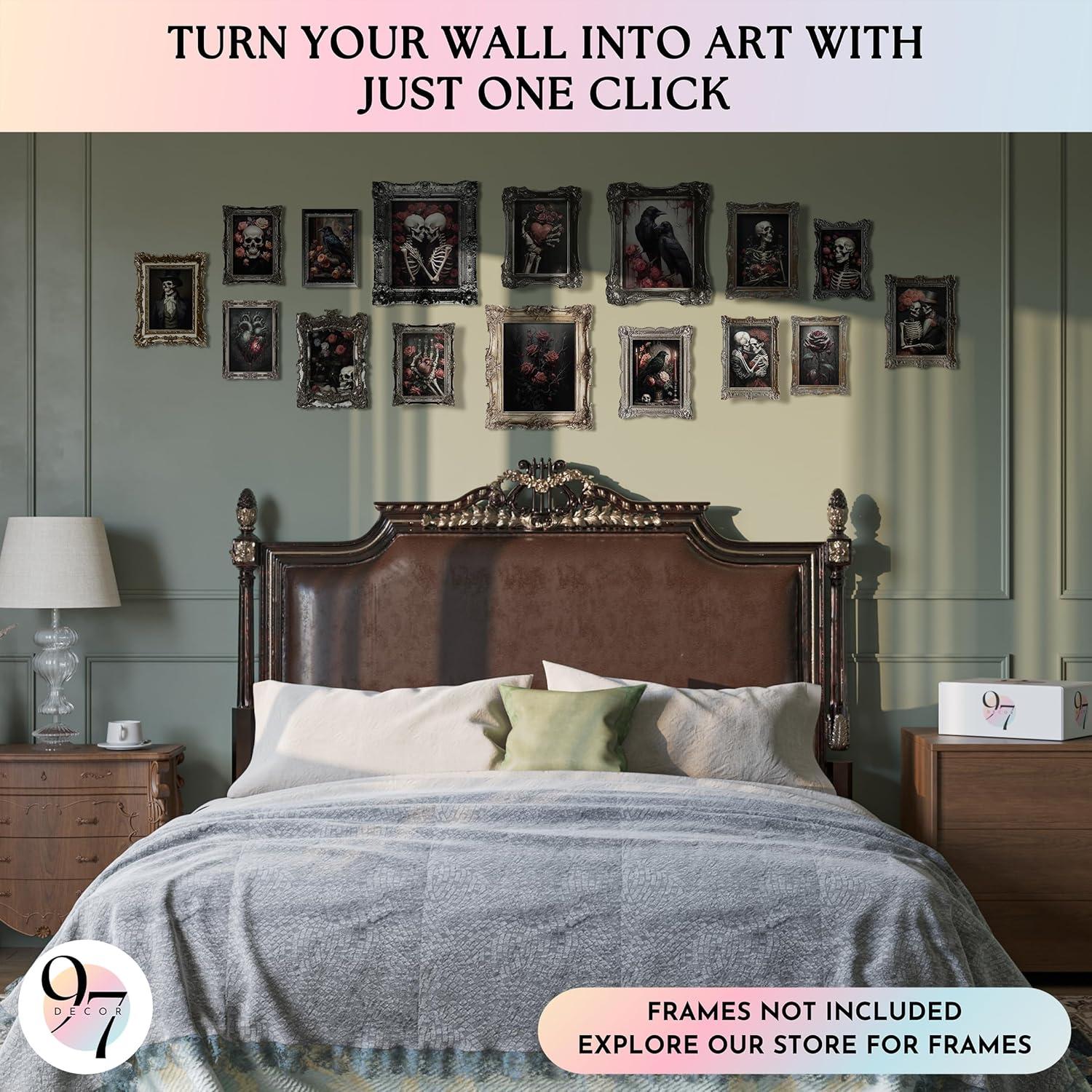 Gift Idea: A creative gift for fans of framed halloween art, raven decor, skull decor for home, and romantic goth decor.