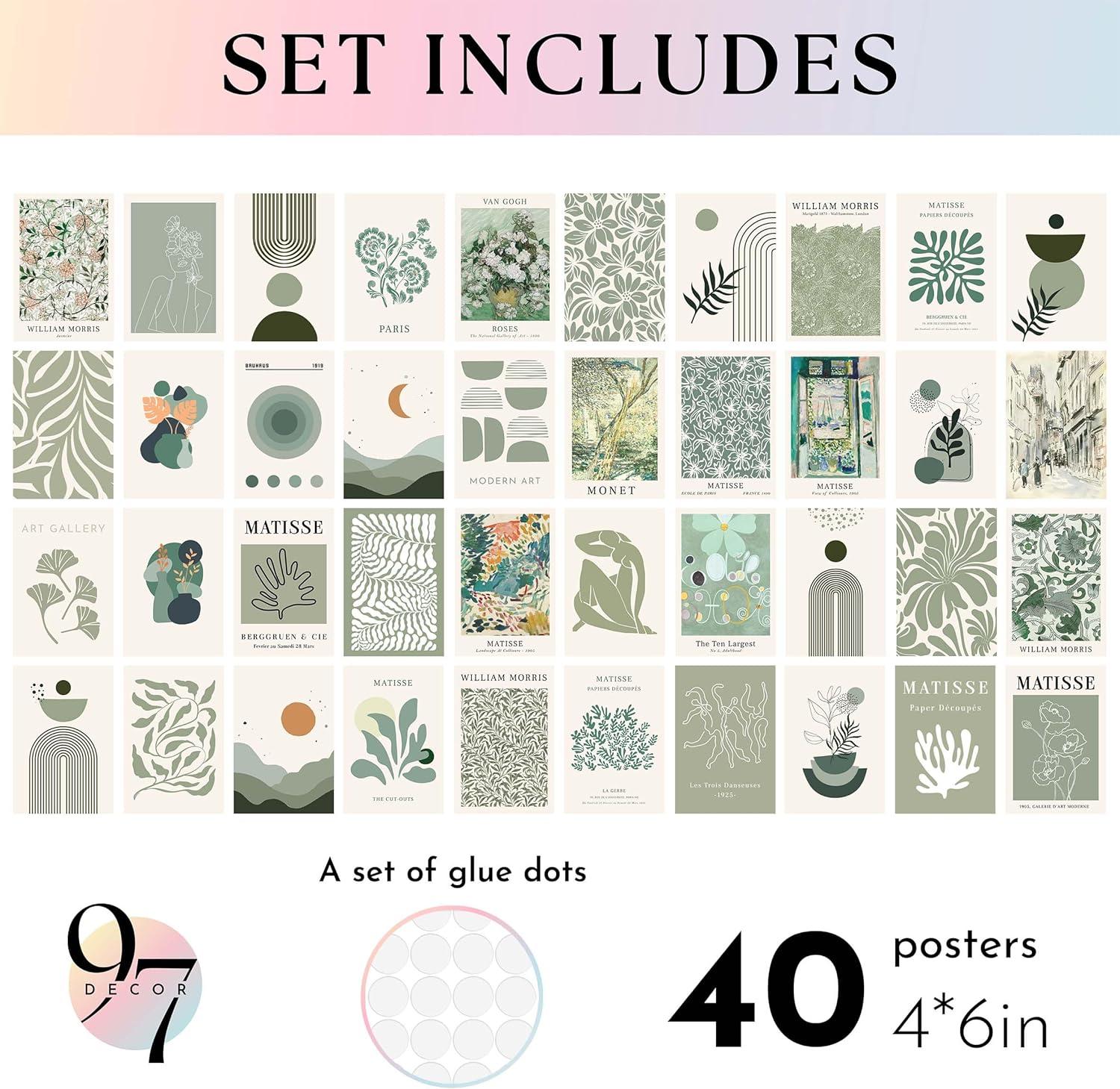 High Quality: crafted on premium paper, these sage green posters, sage green pictures, matisse wall art, wall art green, and green paintings wall decor add sophistication to any wall decor sage green setting.